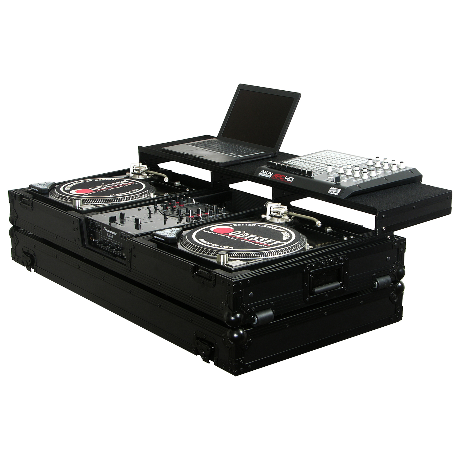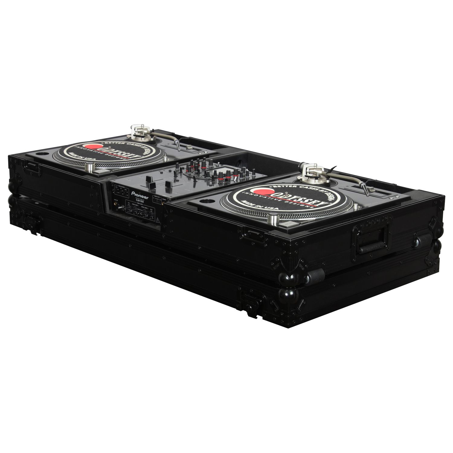 Black Low Profile 12″ Format DJ Mixer and Two Battle Position Turntables Flight Coffin Case with Wheels and Glide Platform