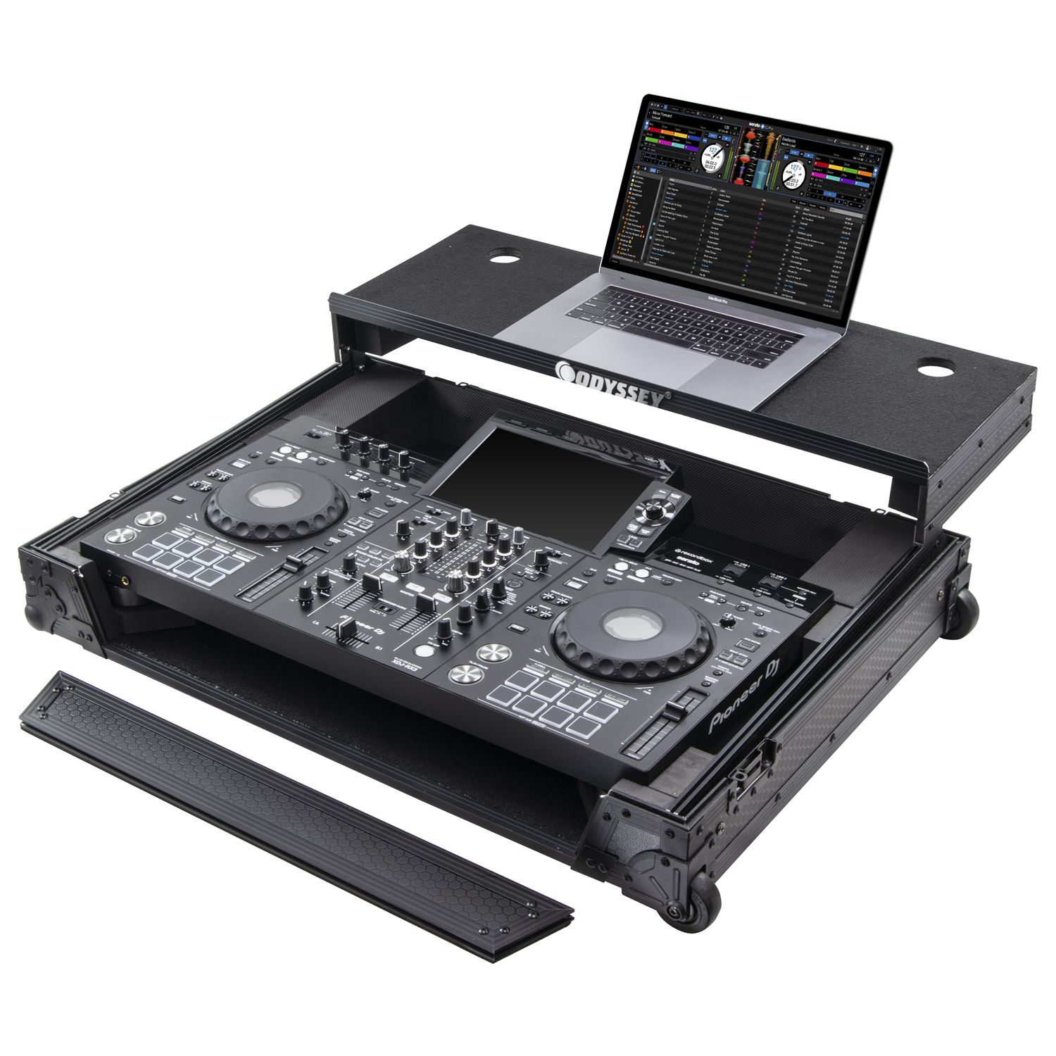 Odyssey DDJ-FLX10 1U Flight Case with Glide Style Laptop Platform and Corner Wheels