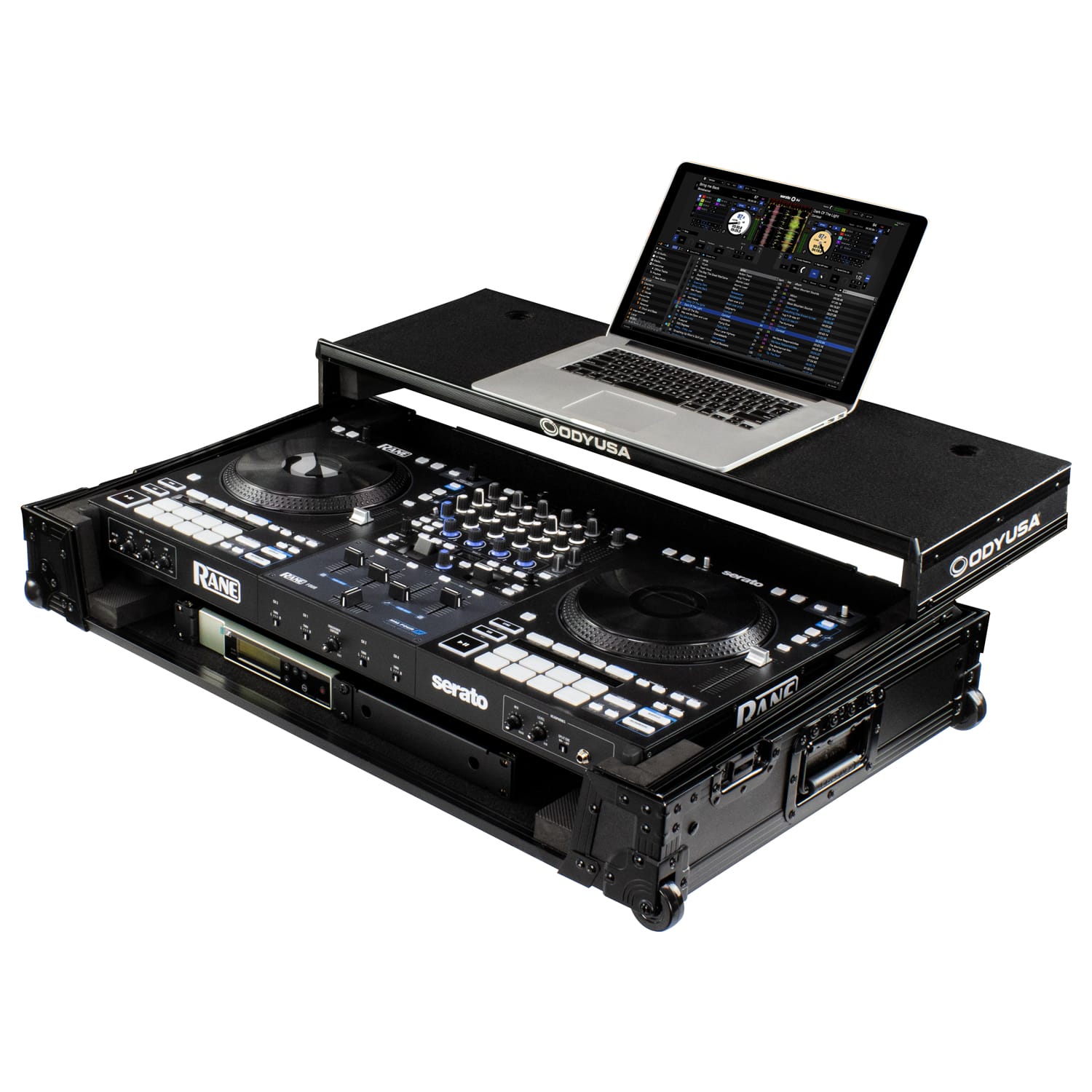 RANE FOUR Black Label 1U Flight Case with Glide Style Laptop Platform and Wheels