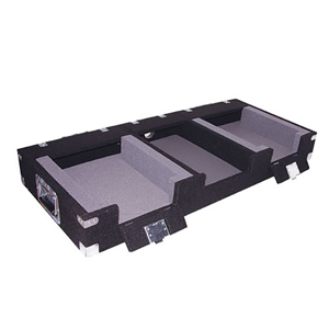 The carpeted C10DNS5000 DJ coffin console case holds 2 Denon DN-S5000 CD players and a 10" format DJ mixer. Features foam-lined player wells and front player access panels.