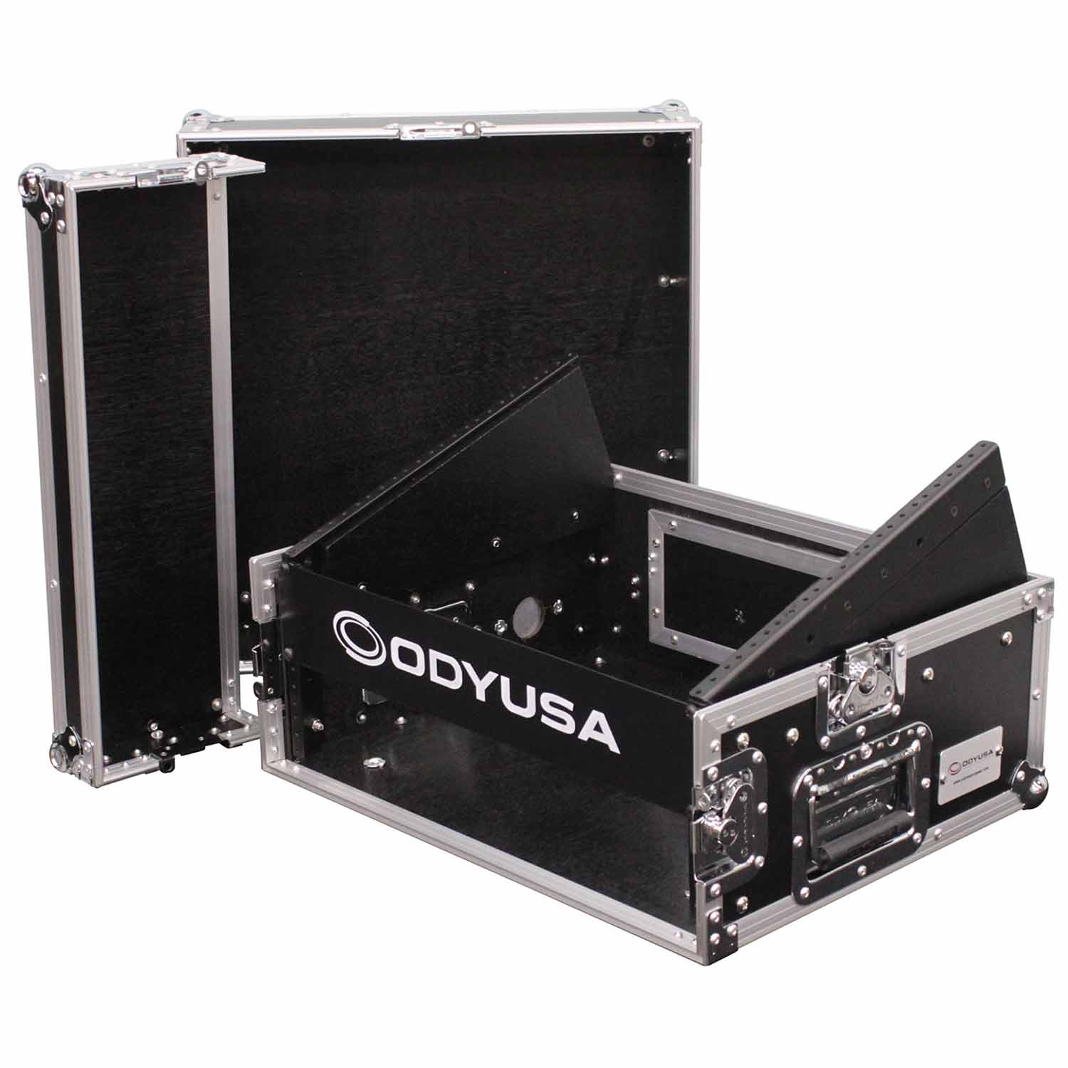Our Combo Racks give you the best of both worlds. Mount mixers and controllers on top for convenient access and all other essentials below. Each features heavy-duty rubber feet (non-wheeled versions), spring-loaded handles, and recessed hardware. "W" versions feature heavy-duty casters on a dolly plate (2 with sure stop brakes).