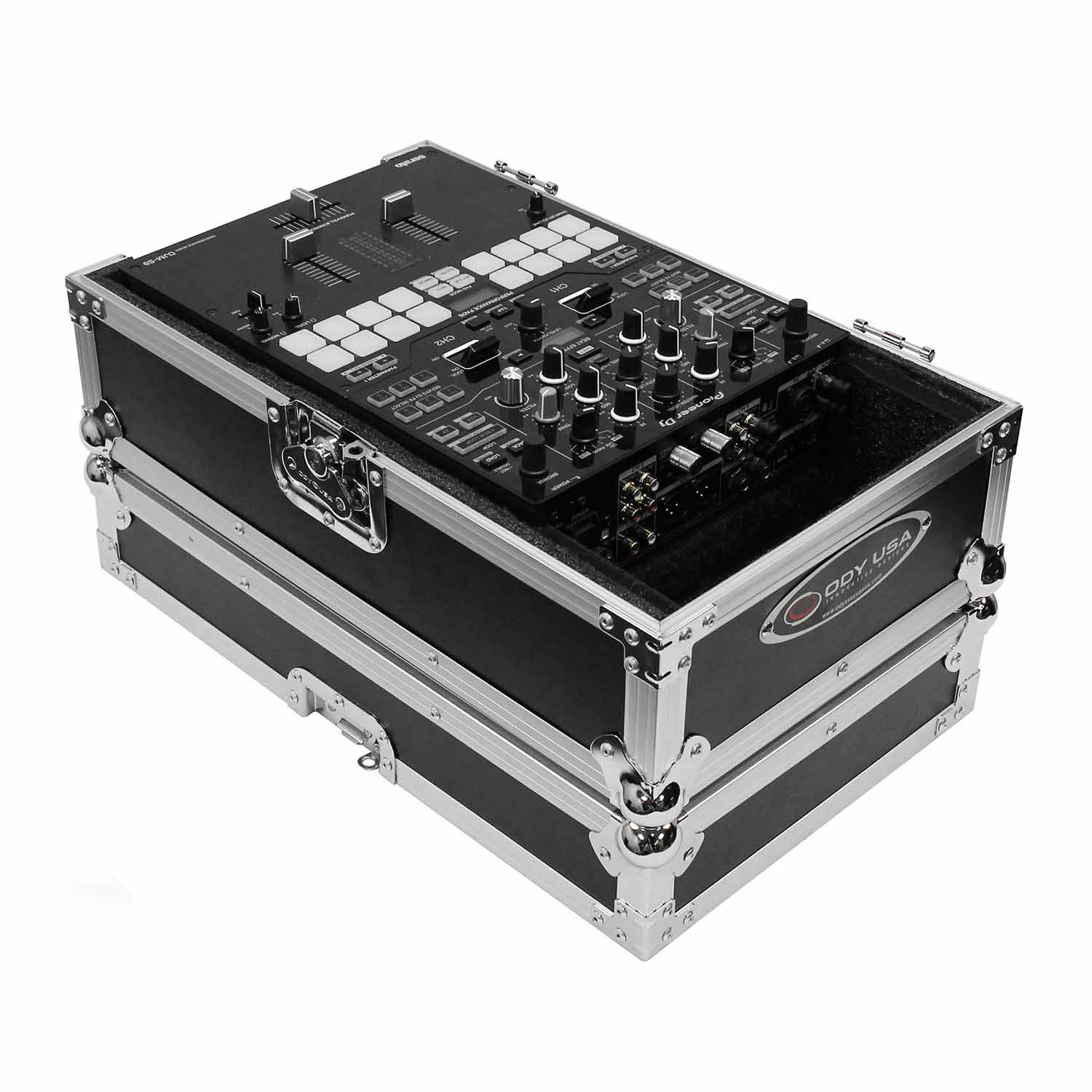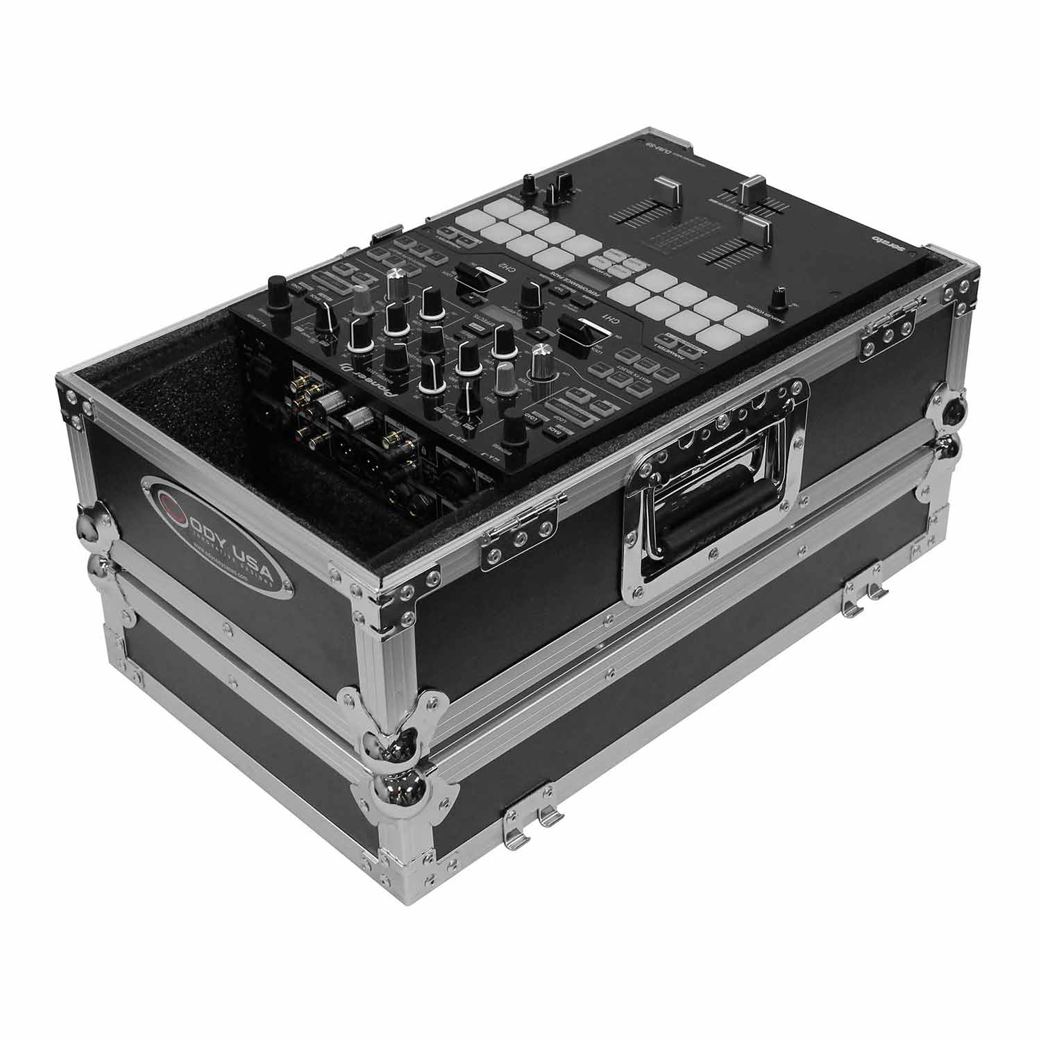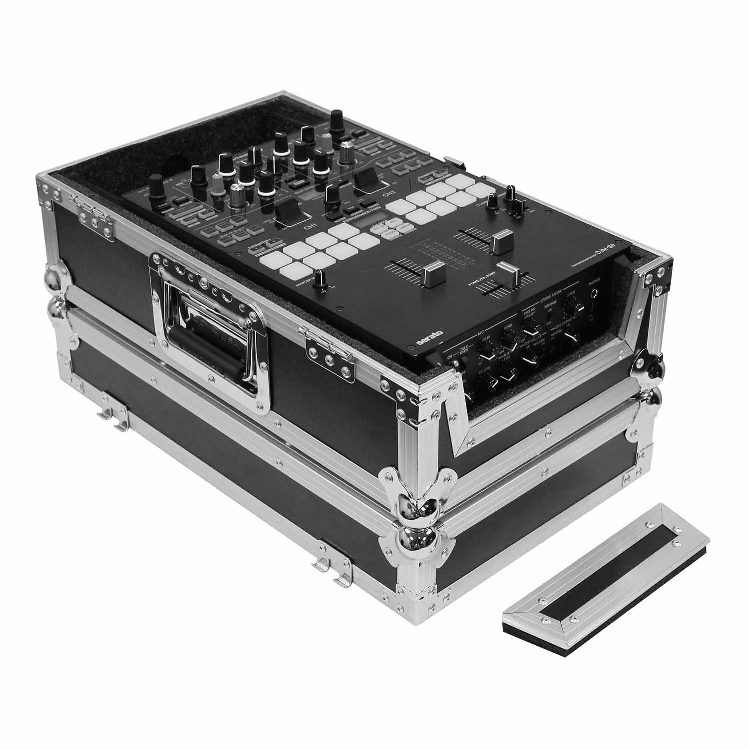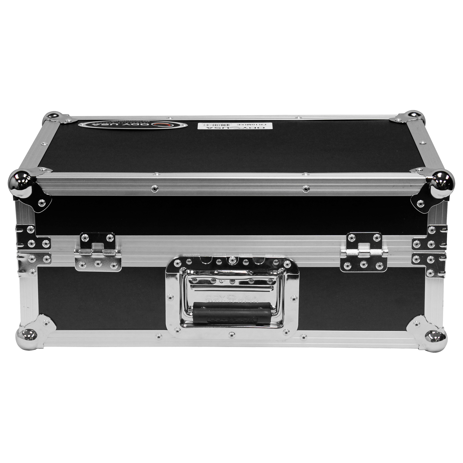 Transport your 10" format DJ mixer in style with our foam-lined Flight Ready™ mixer case. The front removable panel provides full protection during transit, yet can very easily and conveniently be slid out to access front mixer controls and input jacks during use. For additional mixer elevation, you can use the lid as a stacking base, very useful when using those lower tables or for taller DJs.
