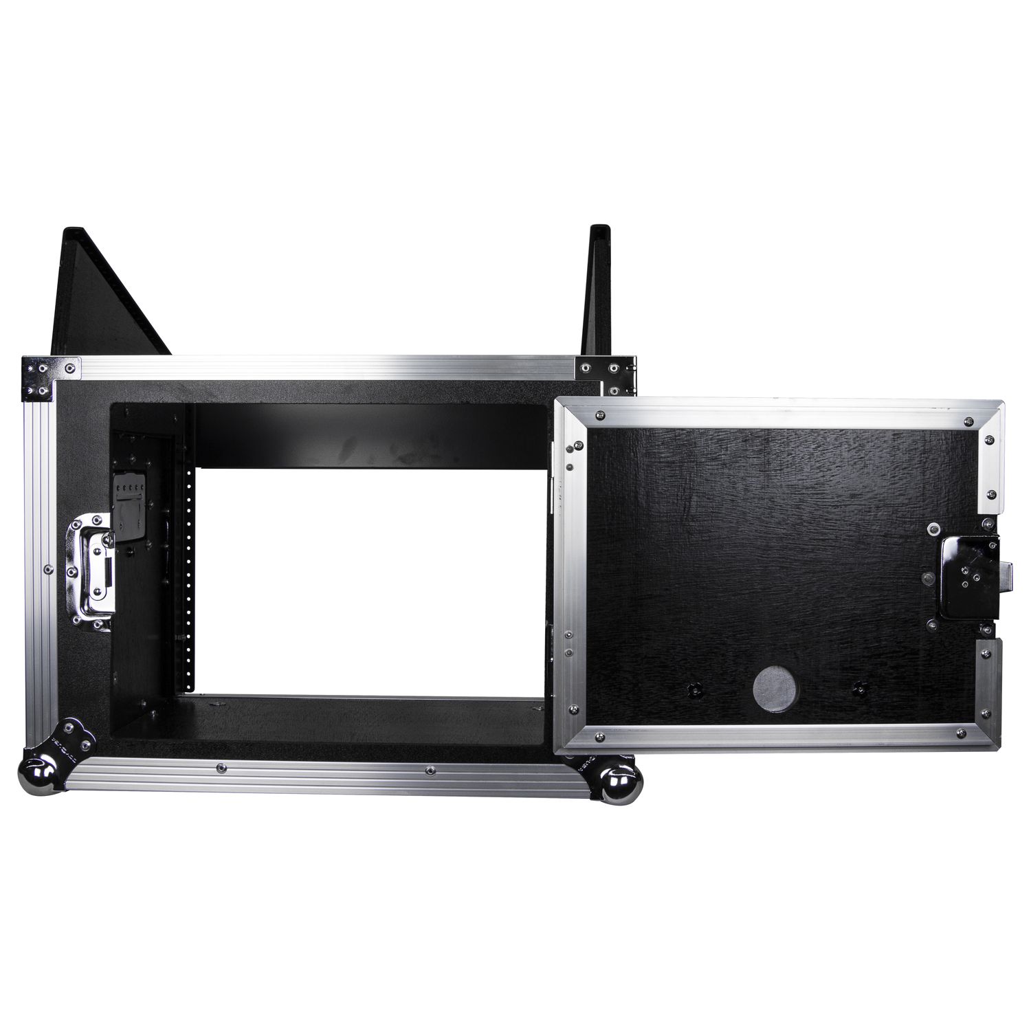 Our ATA Combo Racks give you the best of both worlds. Mount mixers and controllers on top for convenient access and all other essentials below. Each features heavy-duty rubber feet (non-wheeled versions), spring-loaded handles, and recessed hardware. "W" versions feature heavy-duty casters on a dolly plate (2 with sure stop brakes) while "DLX" versions feature lids that double as side mount workstation tables.