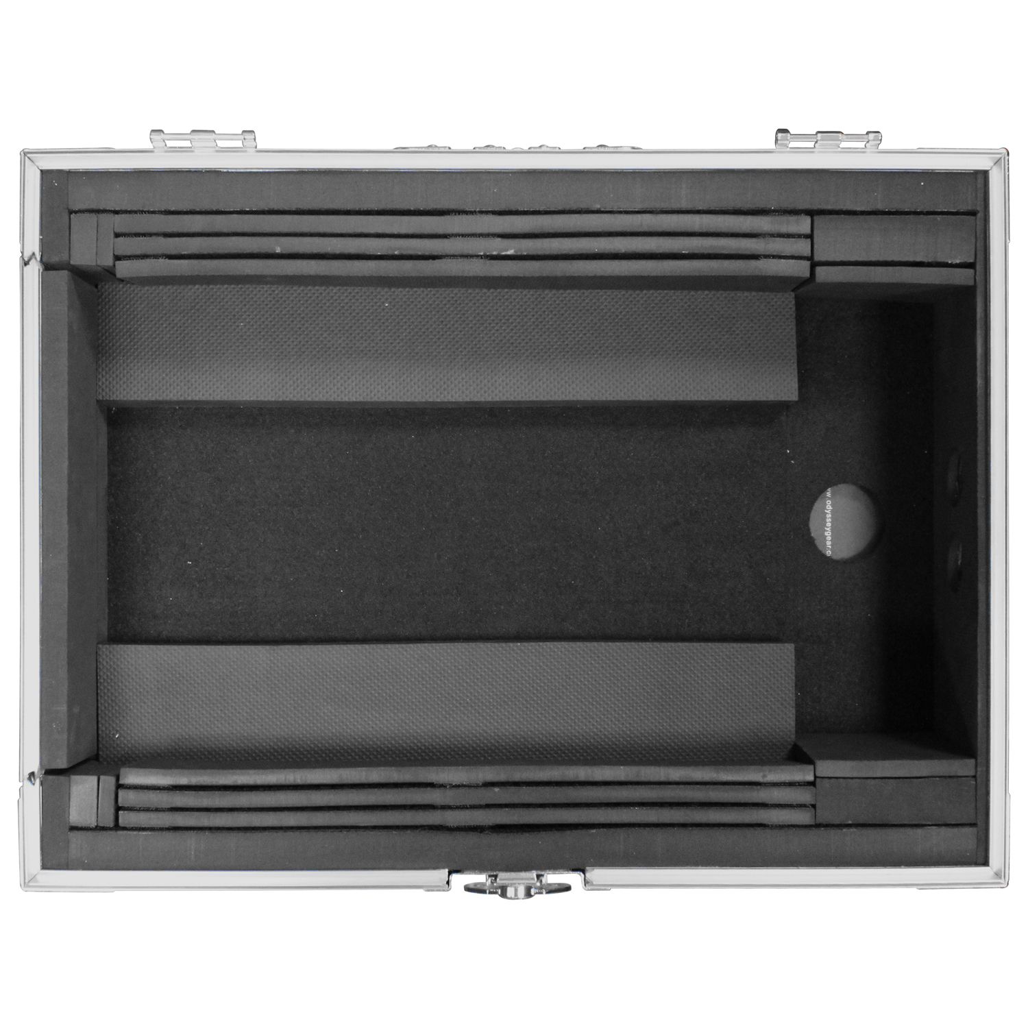 Transport your 12" format DJ mixer in style with our foam-lined Flight Zone® mixer case. It features an extra wide front removable access panel that provides full protection during transit, and that slides out to access the mixer's front controls and input jacks during use, perfect for all of today's hottest DJ mixers. The "extra deep" design gives you additional rear space behind the mixer, convenient for quick easy cabling or storing compact accessories. The removable break-away hinged lid doubles as an elevated base for those lower tables or taller DJs.
