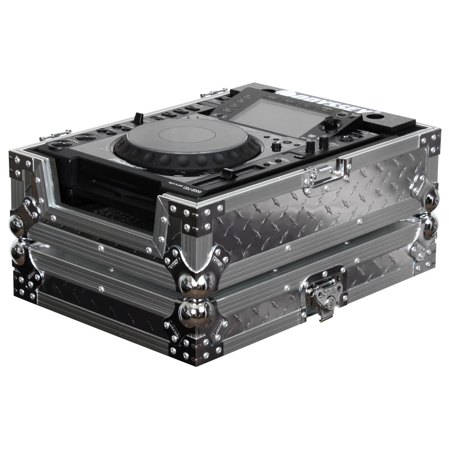 You can guarantee that your setup will stand out apart from other DJ's with Odyssey's Diamond Case Series. Odyssey was the first to bring a full line of Silver Diamond Plated DJ Cases to the market, and this classic ATA design has once again re-emerged in the Flight Zone™ case series. So why not add some flare as you move the crowd with your large format tabletop CD/digital media player in our FZCDJDIA case. For additional player elevation, you can use the lid as a stacking base, very convenient when using those lower tables or for taller DJs. The FZCDJDIA> also features easy access to the front controls of your player with Odyssey's V-Cut™ removable front angled panel design.