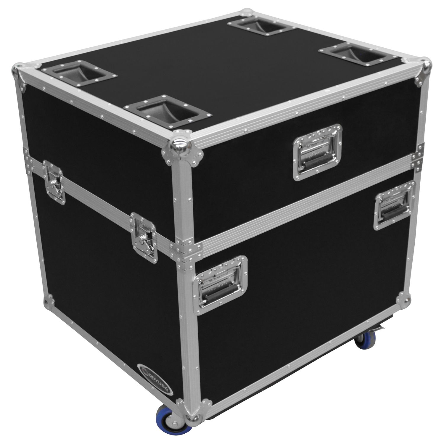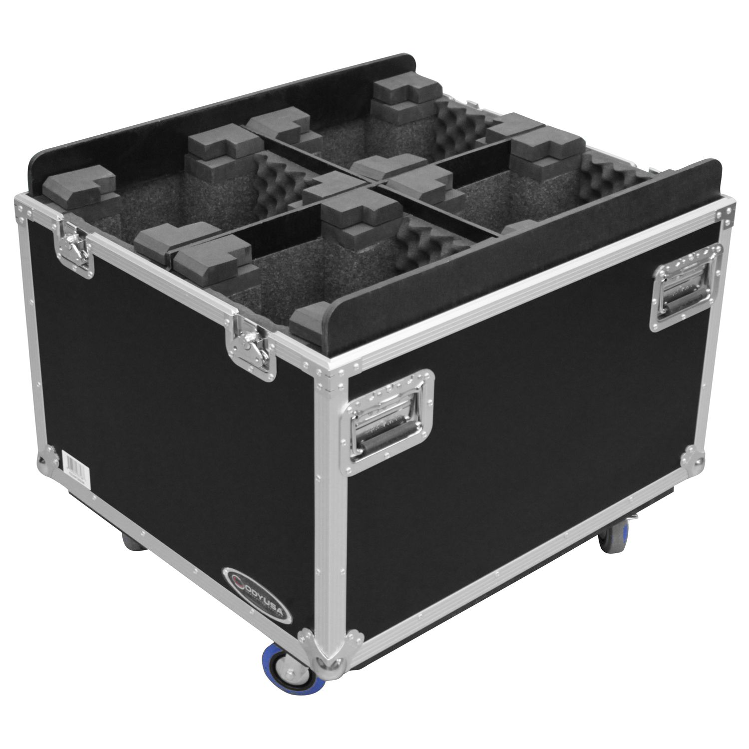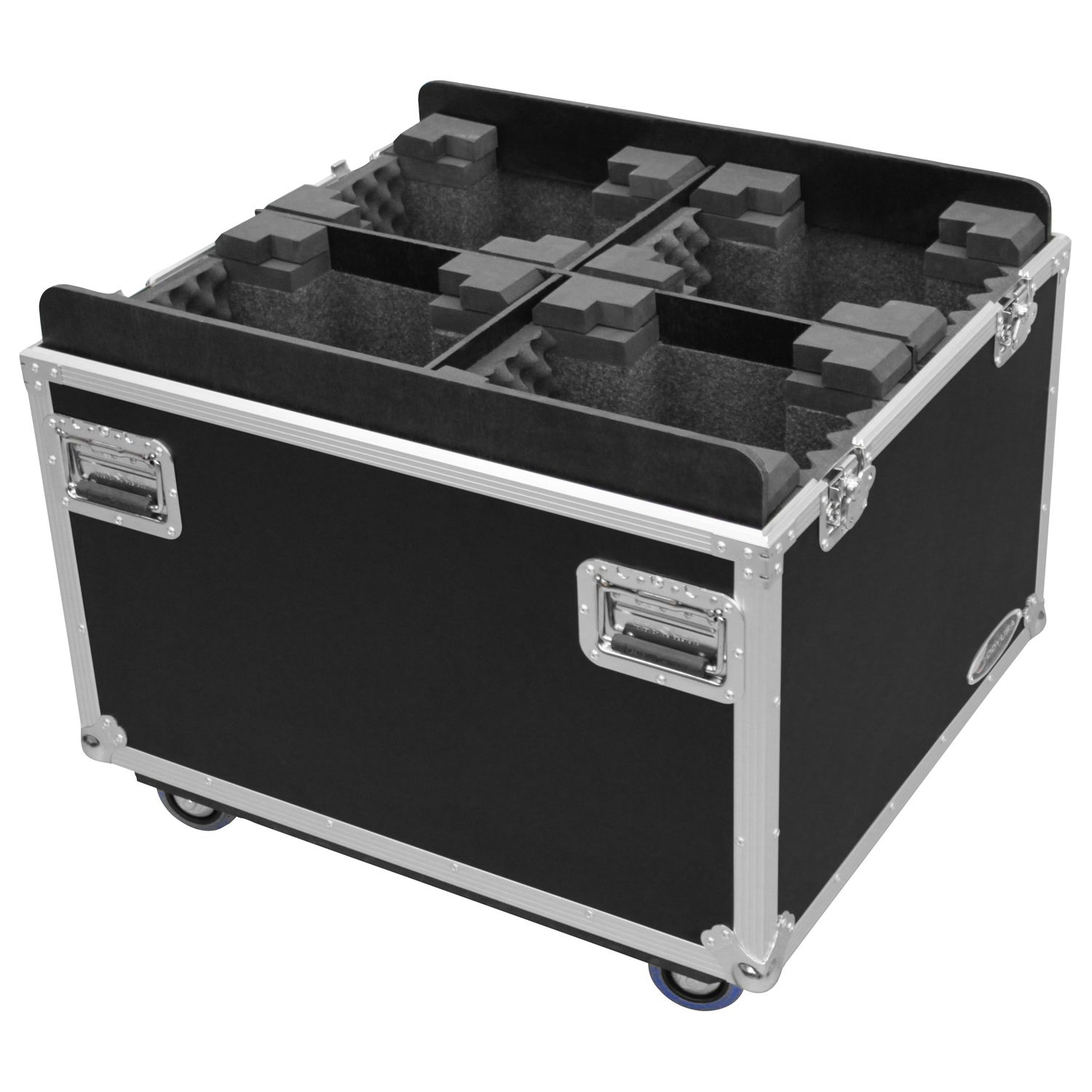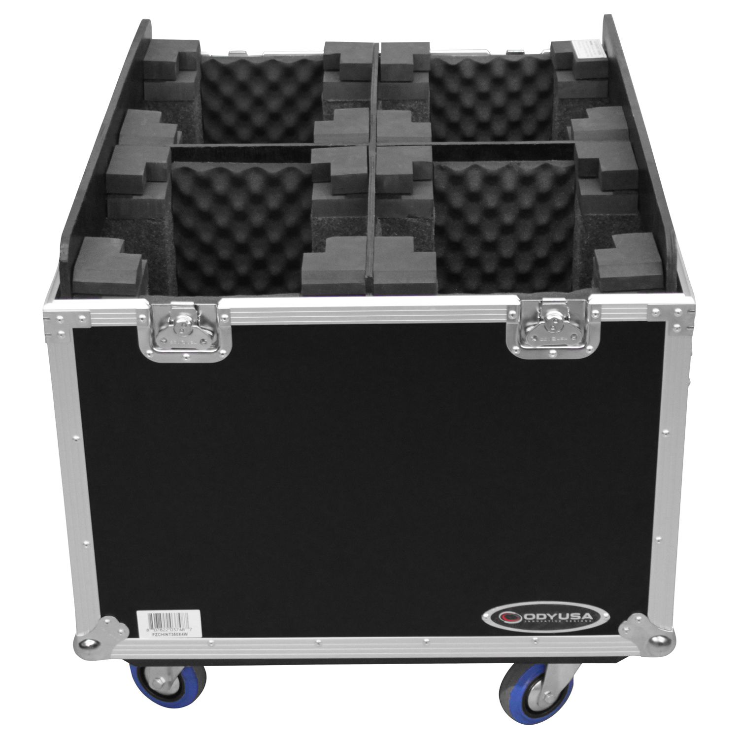 The FZCHINT350X4W road case holds four Chauvet Intimidator Beam/Spot LED 300/350s, Spot LED 355Z/400 IRC's, and other similar size moving head lights. Features include an adjustable interior bevel foam designed with individual compartments for each light, heavy-duty casters wheels and recessed hardware, stacking caster lid plates, and easy guide lid cover panels to name a few. There's no need to be "intimidated" by long rough road trips when your gear is protected with Odyssey cases.