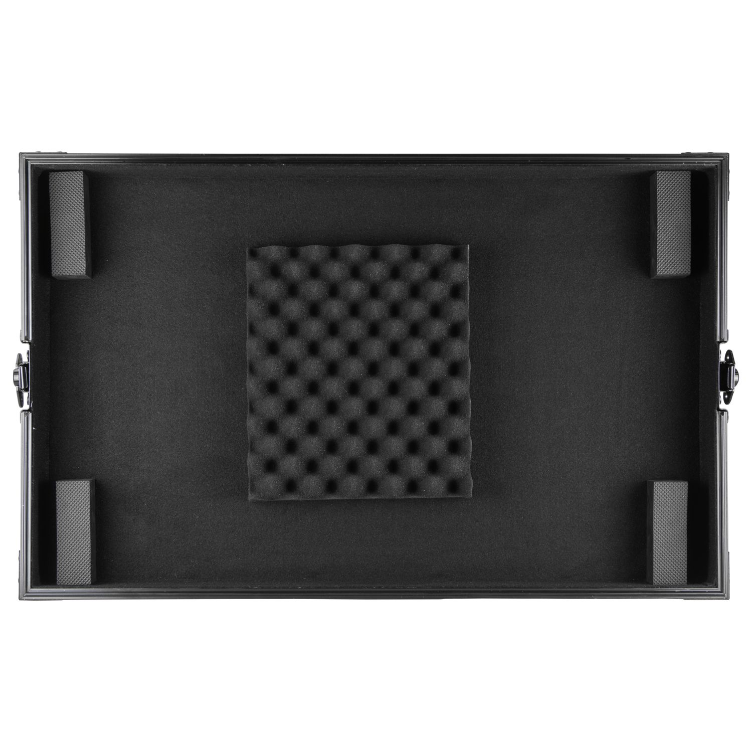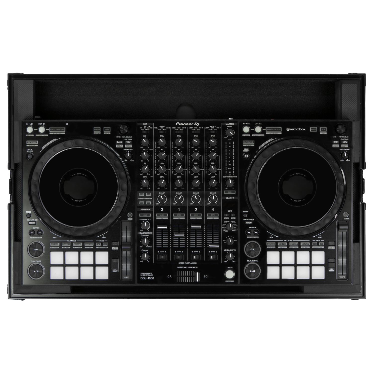 The compact BLACK LABEL FZDDJ1000BL case specifically designed to hold the Pioneer DDJ-1000 / DDJ-1000SRT Rekordbox DJ controller features our exclusive, patent pending, high-density quick access open port bevel foam interior that neatly angles upward around the controller which is elevated from the lower section of the case for an efficient control surface. The sleek reverse lid shallow bottom design allows easy access to the front controls and headphone/mic jacks. Each is built with rubber feat, hefty ball corners, and heavy-duty recessed latches and handle.