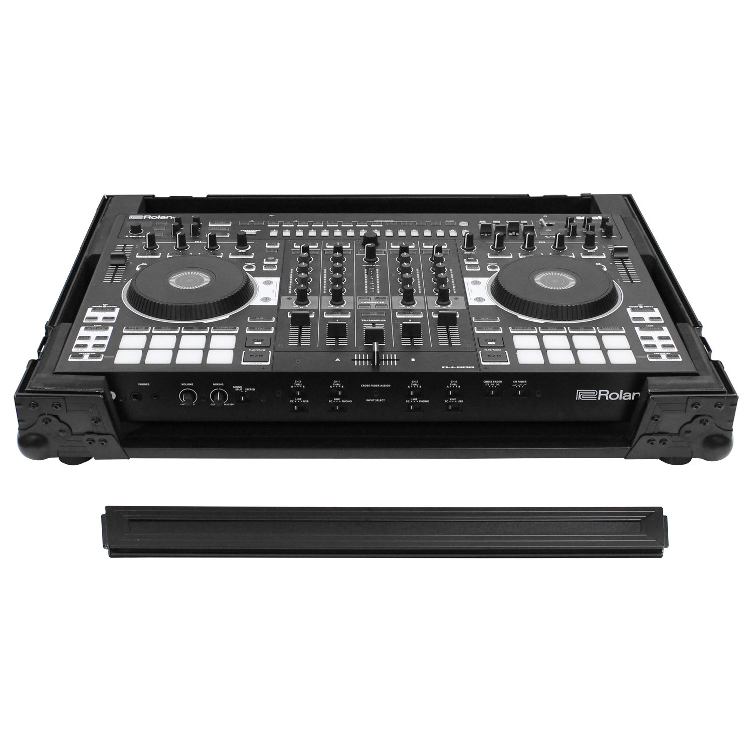 The Black Label™ FZDJ808BL case is designed to hold the Roland DJ-808 or Denon MC7000 DJ controllers. Its Features include our exclusive, patent pending, high-density bevel foam interior that is neatly angled upward to raise the controller for an efficient control surface. A V-cut™ removable front panel allows easy access to the front controls and headphone/mic jacks. Other features include rubber feet, hefty ball corners, and heavy-duty recessed latches and handle.