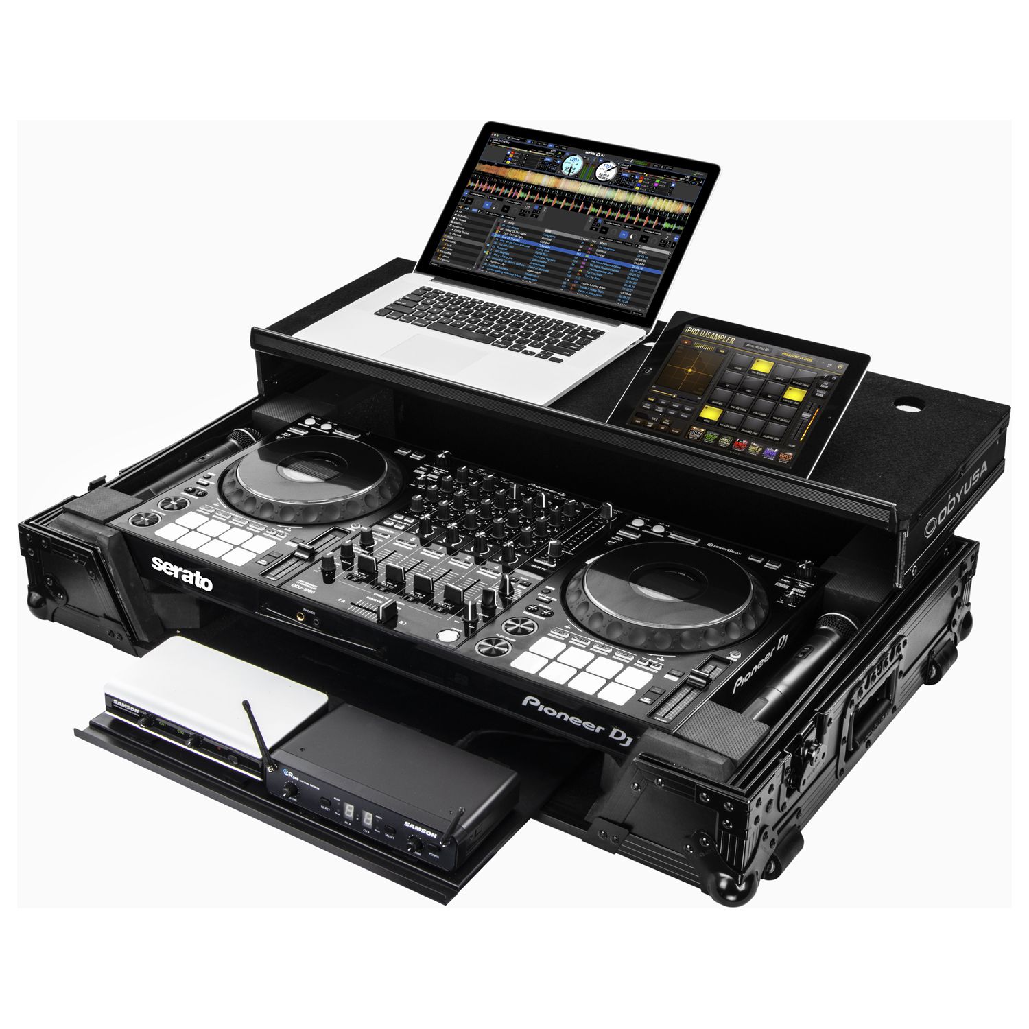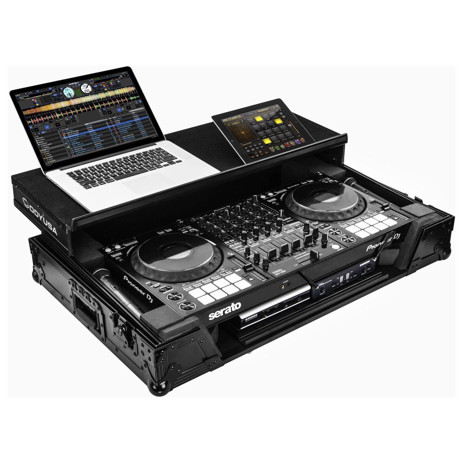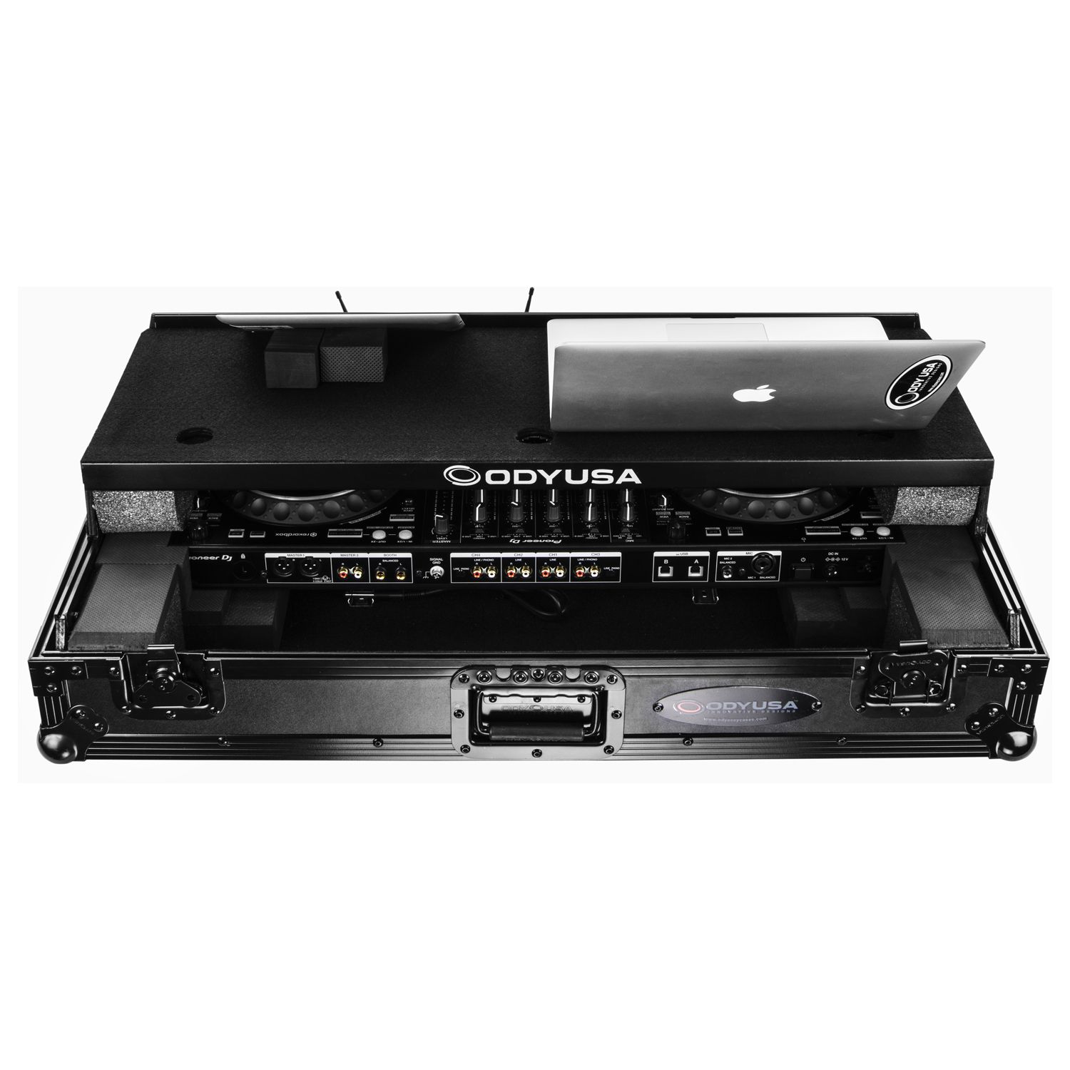 Disclaimer: Odyssey Innovative Designs strives to ensure the accuracy of the information contained herein. However, due to the constant changes in raw material availability and usage, improvements in design, typographical errors, and other factors that may be beyond our control, We reserve the right to make changes in designs, styles, features, colors, dimensions, and other specifications without prior notice. Gear (for examples, laptops, DJ controllers, turntables, mixers, microphones, headphones, needles, cartridges, mats, and others) shown in product images are not included. Certain areas of the product images may not be shown in scale due to the nature of the photography. Copyrighted logos and trademarks are those of the respective company: Akai, Alesis, Allen & Heath, American Audio, Apple, Avertec, B-52, BBE, Behringer, Boss, Cascio, Chauvet, Coemar, Cortex, Crown, Dell, Denon, Digidesign, Drawmer, Elation, Fender, Gemini, Gemsound, Hercules, Korg, M-Audio, Mackie, Marshall, Martin, Mesa, Multi-Cart, Numark, Ortofon, Pearl River, Peavey, Pioneer, Rane, Robe, Roland, Serato, Shure, Sony, Soundcraft, Tascam, Technics, Traktor Scratch, Vestax, Vox, Yamaha, etc. Equipment pictured not included.