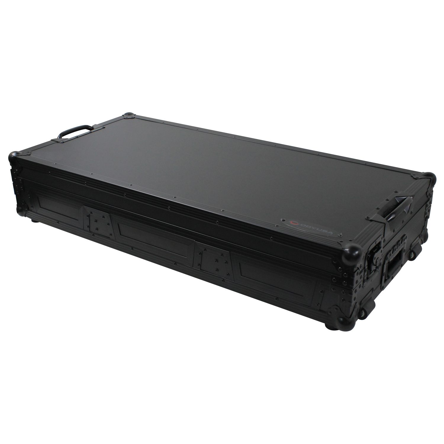 The Black Label™ FZGSL12CDJWRBL Low Profile Glide Style™ Coffin holds one 12" format mixer and two large format tabletop CD/media players. Features include rugged built-in roller wheels, sturdy 90 degree handles on the lid, recessed latches and spring-loaded handles, heavy-duty ball corners, and front mixer and player V-cut access panels. Cabling is clean and easy with convenient access ports throughout the rear of the case.