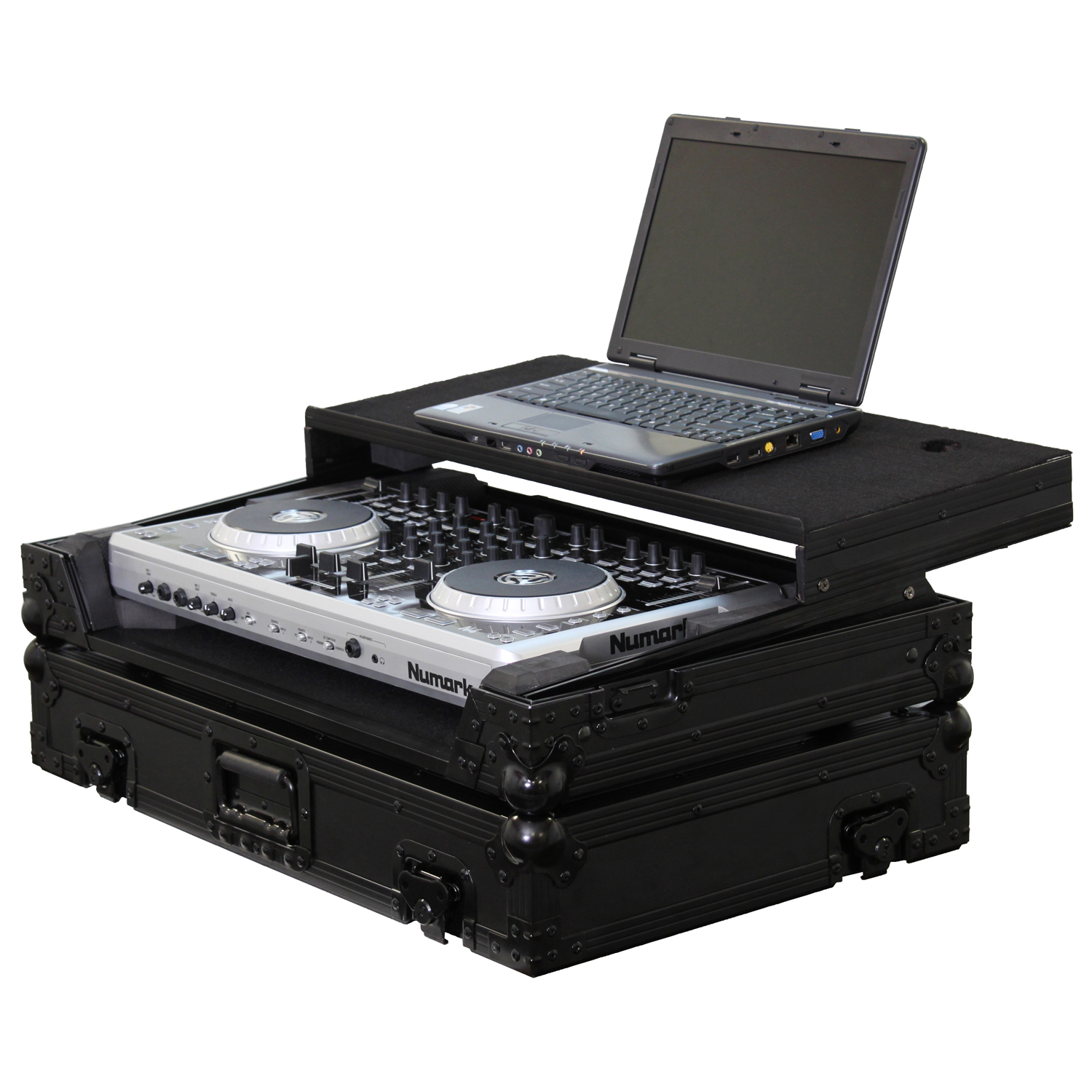Black Numark N4 Flight Case with Glide Platform