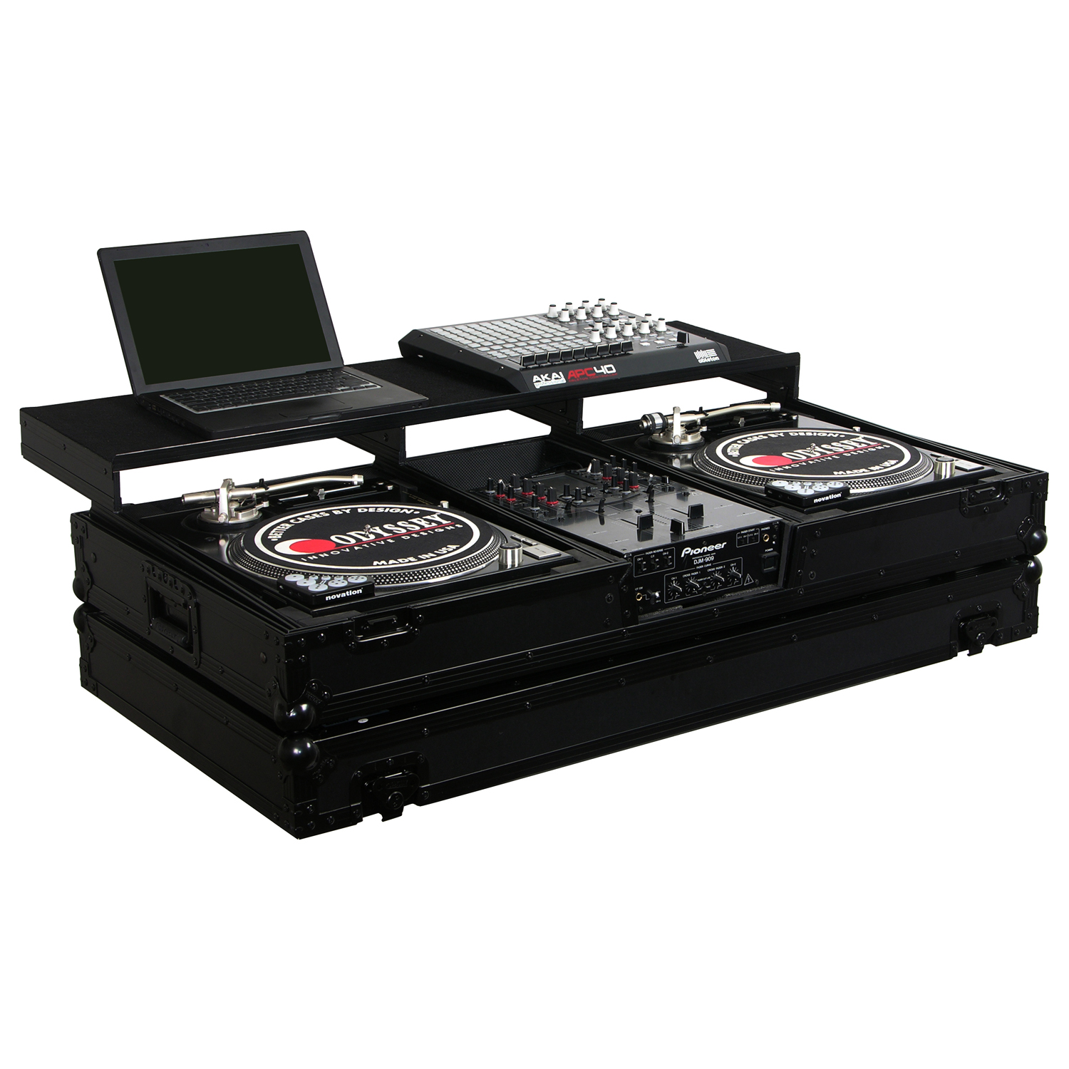 As the evolution of the DJ continues, so does the designs of Odyssey DJ coffins. Introducing the REMIXER™ GLIDE STYLE™ Series DJ coffins featuring a full width glide platform to place all your DJ remix gear. With digital vinyl software such as Serato and Traktor Scratch, more DJs have gone through the transition from beat mixer turntablist to full on remixer producer. Remixing tools to the DJ, such as keyboards and controllers to laptops and iPADs are now so easily availability and affordable, and Odyssey is there in the middle of it all providing these DJs the most functional DJ coffins yet with the REMIXER™ GLIDE STYLE™ Series.