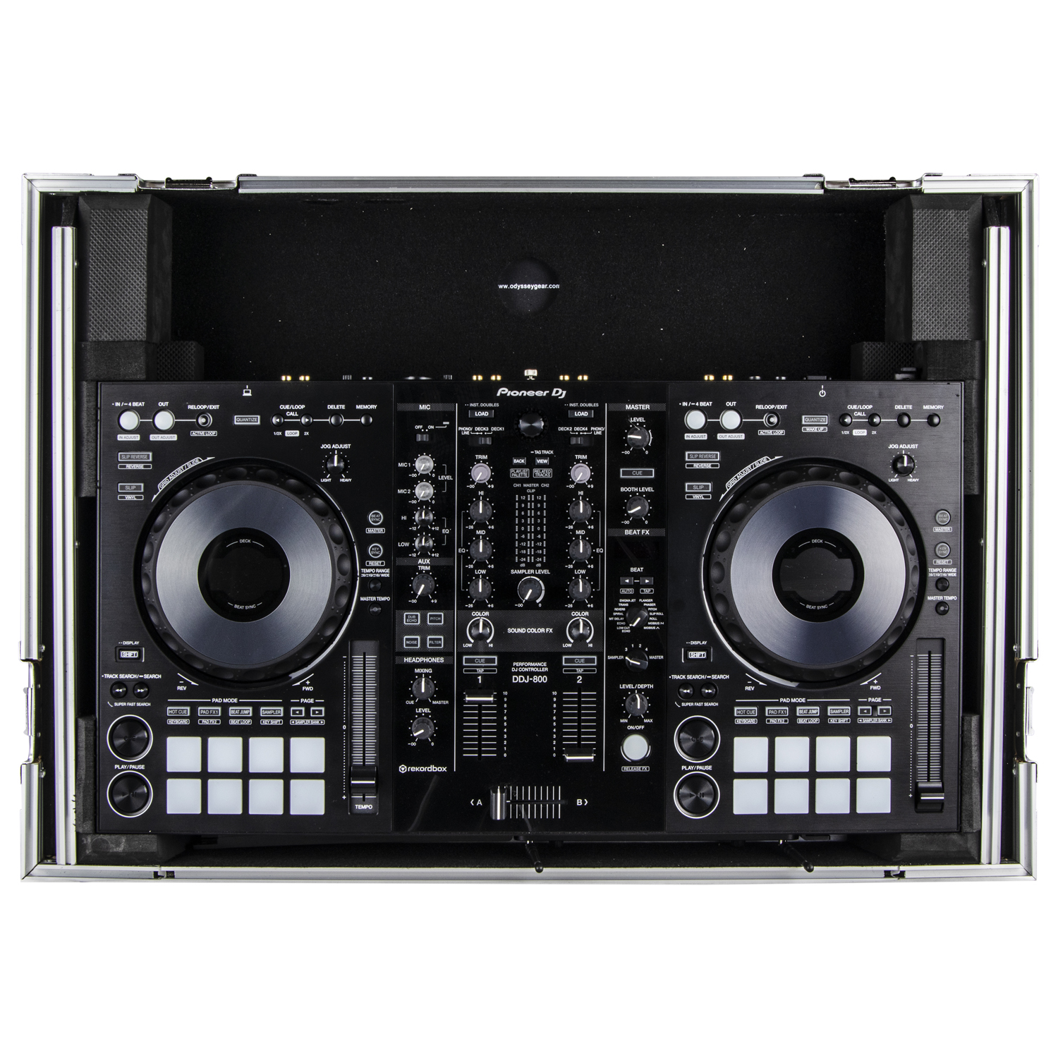 The Odyssey FZGSPIDDJ8001 Flight Zone® case includes a removable V-cut™ front panel allowing access to the all of the DJ controller's front knob controls and input jack ports. It features our patented Glide Style™ platform perfect for positioning your laptop, tablet, effect processors, and other gear right where you want it over the Pioneer DDJ-800 or XDJ-RR rekordbox DJ controller. A cable management port, essential for a clean setup, is positioned below the rear of the player. Also Underneath the controller compartment is another one of Odyssey's signature digital controller case designs; a 1U 19" rack mount space below the controller space perfect for rack mountable gear such as a wireless mic system, power strip, drive rack, pullout shelf, or storage drawer. The mounting hardware included allows for front or rear rack mounting and can be removed all together if needed.