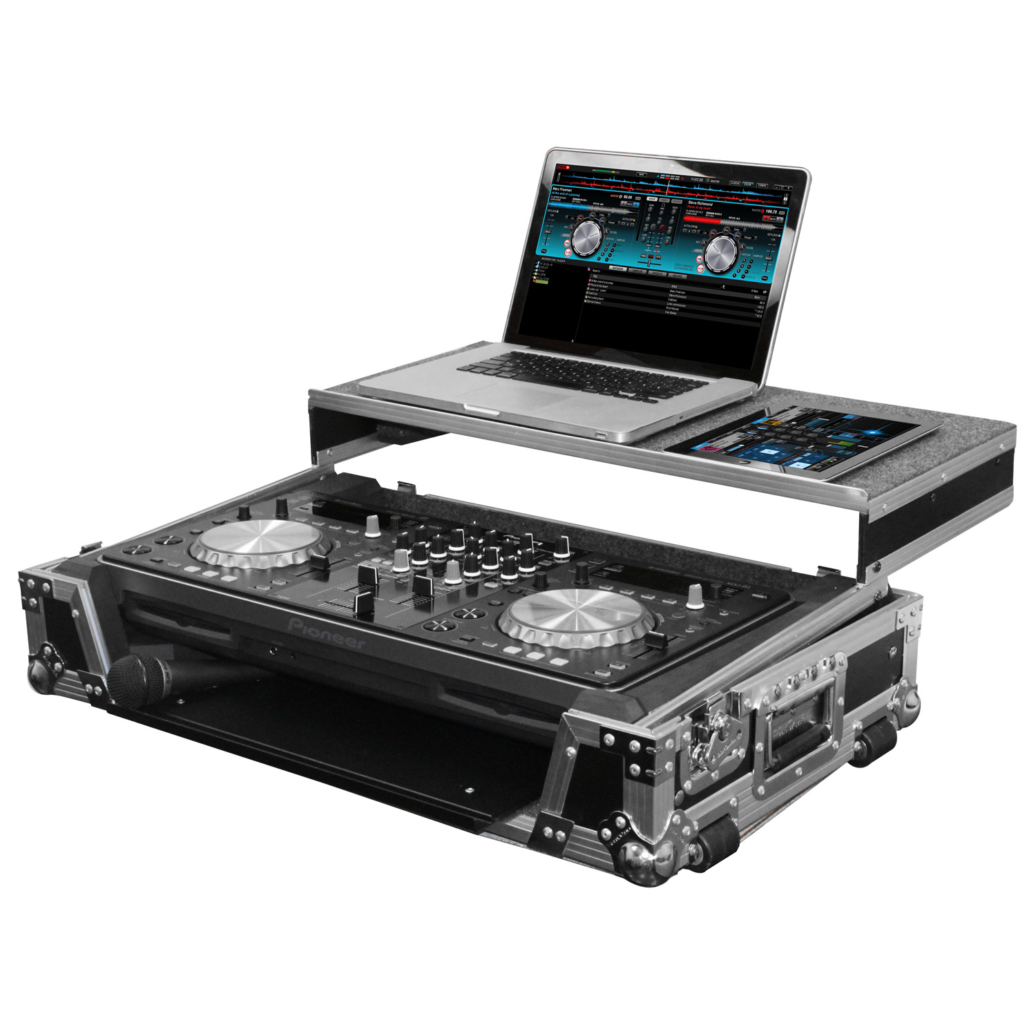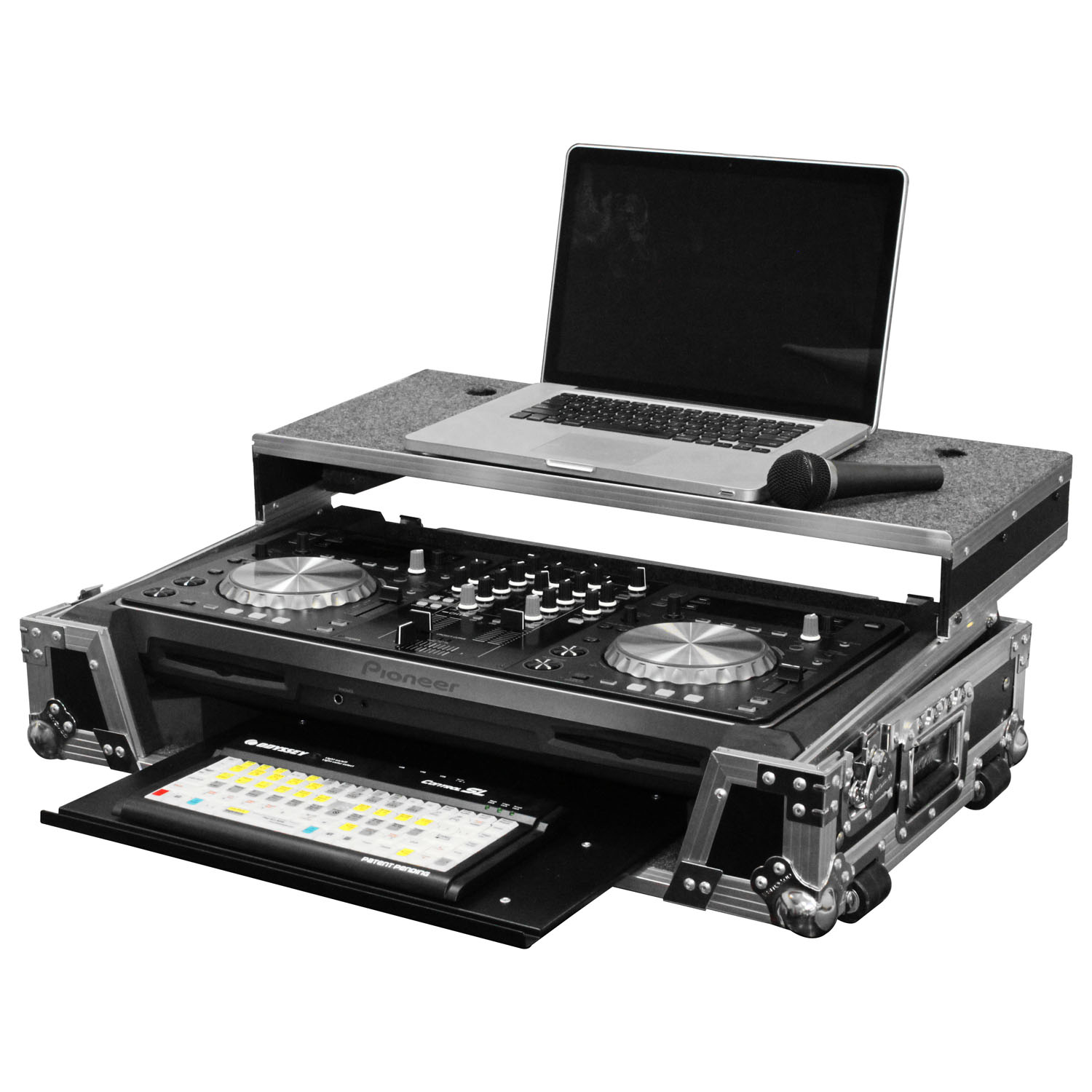 Odyssey presents the Flight Zone™ FZGSPIXDJR1GT case featuring our patented Glide Style™ laptop platform design. Specifically made for the Pioneer XDJ-R1 DJ controller, it also features our exclusive, patent pending, high-density bevel foam interior that neatly angles upward raising the XDJ-R1 for an efficient control surface. The stylish V-Cut™ removable panel allows access to the front controls and headphone/mic jacks. A spacious ventilation/storage pit under the controller is conveniently accessible with the bottom GT™ Glide Tray which is ideal for storing cables, or placing hard drives, smartphones, tablets, and other essentials out of sight from your audience. There are no "blurred lines" when it comes to our products. Odyssey, just good quality cases. That's why you're going to take a good case. We know you want it!