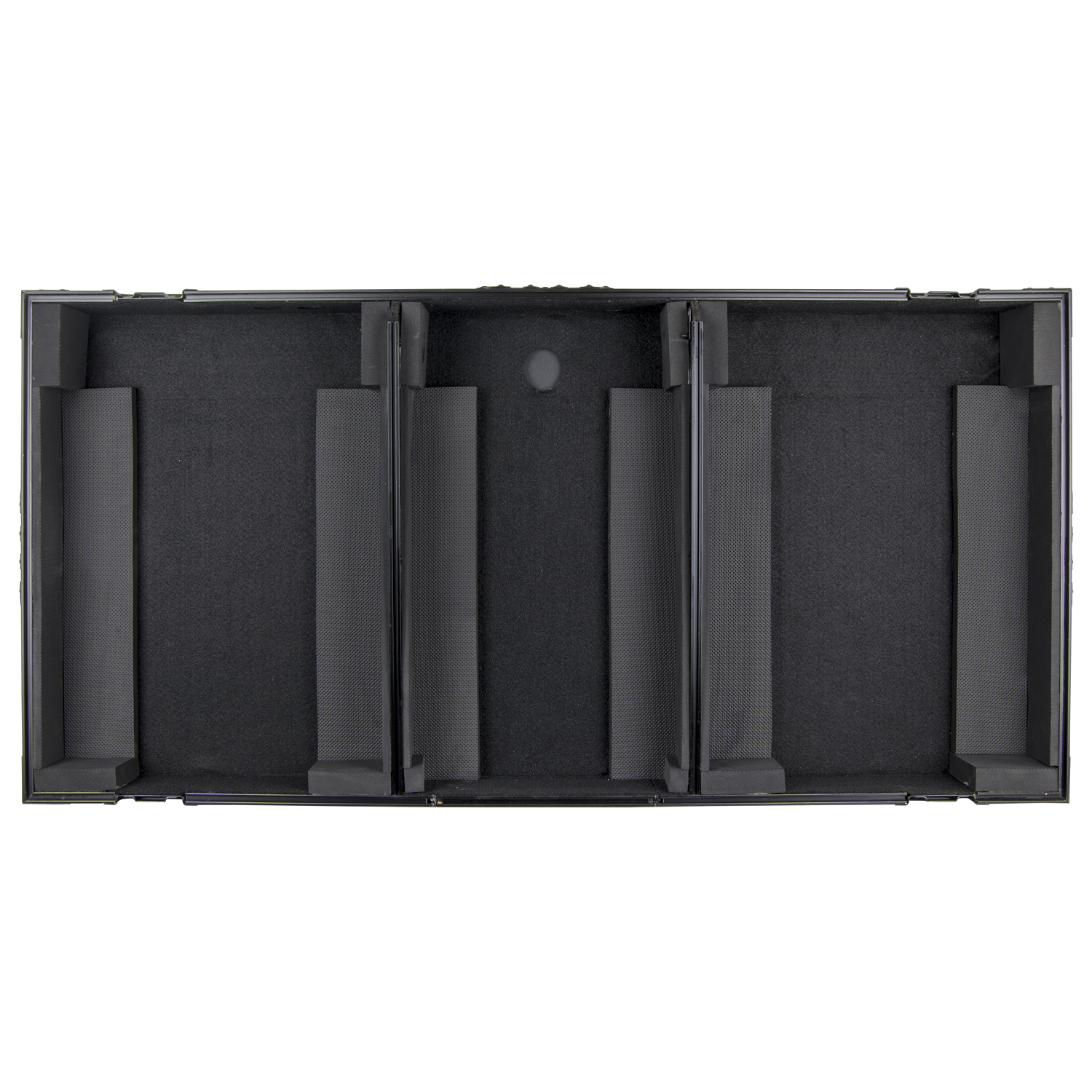 The Black Label™ series FZGSRANE1272W Low Profile Glide Style™ Coffin holds one Rane Seventy / Seventy-Two DJ mixer and two Rane Twelve motorized turntable controllers. Features include rugged built-in recessed roller wheels, sturdy 90 degree handles on the lid, recessed latches and spring-loaded handles, heavy-duty ball corners, and a front mixer removable access panel. Cabling is clean and easy with convenient access ports throughout the rear of the case.