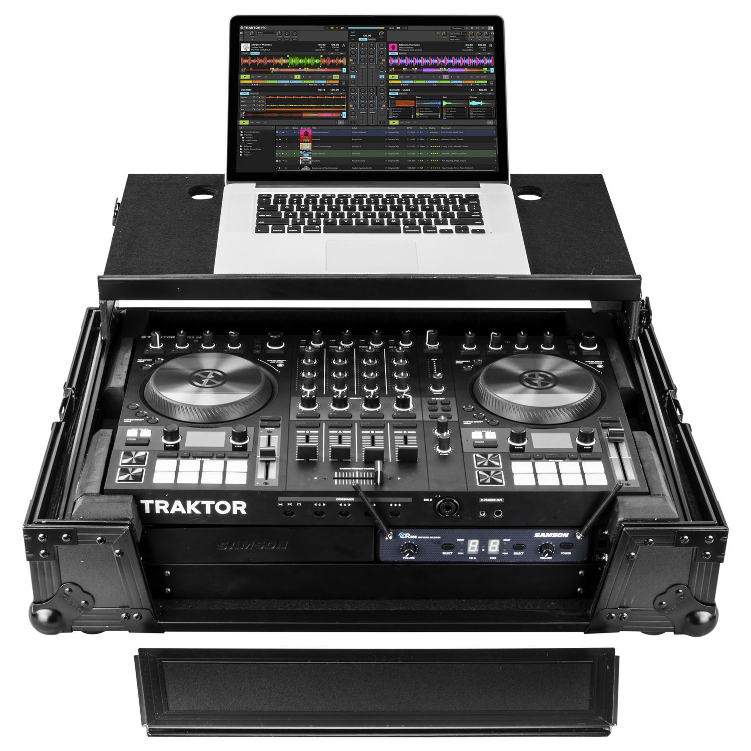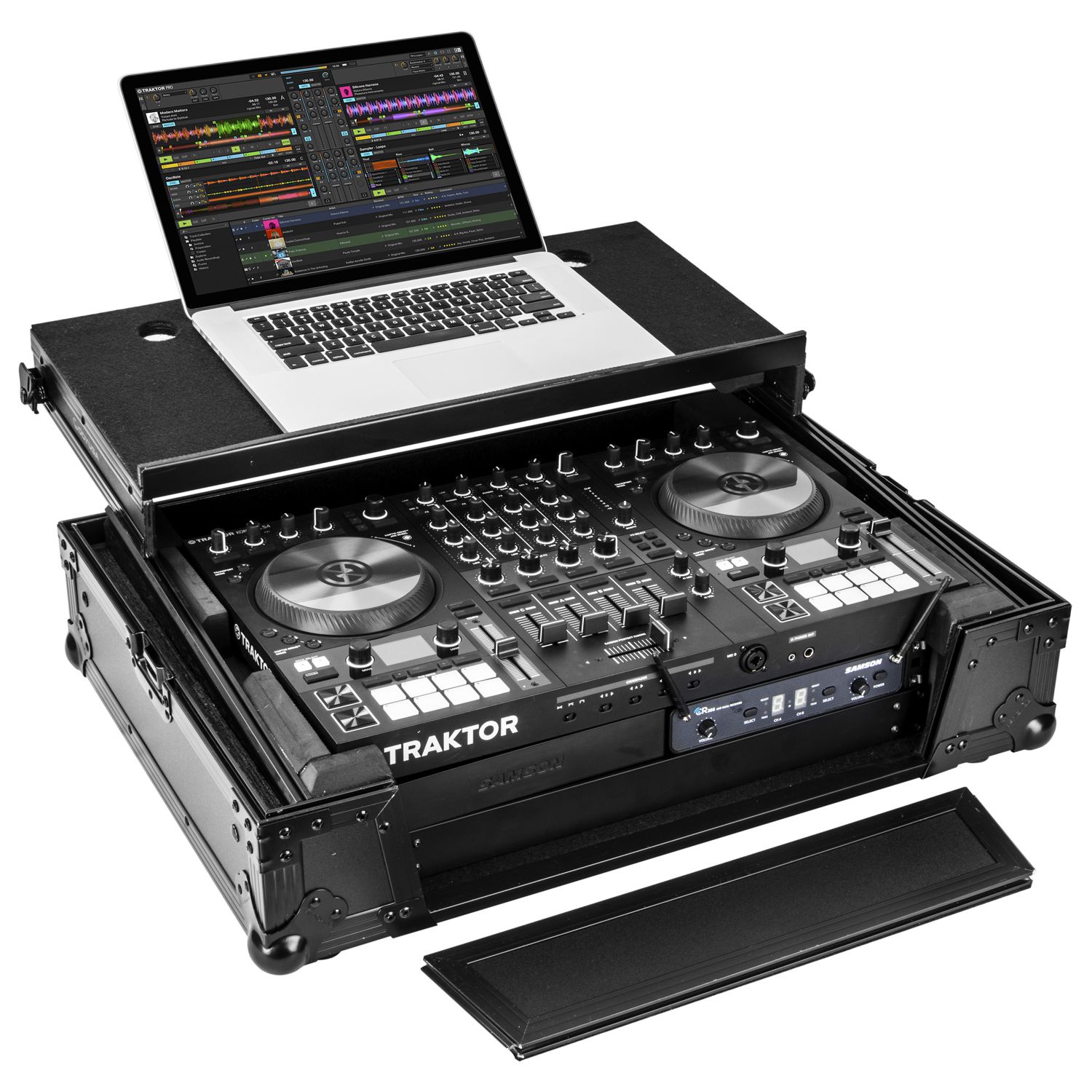 The Odyssey FZGSTKS4MK32BL Black Label™ case includes a removable V-cut™ front panel allowing access to the all of the DJ controller's front knob controls and input jack ports. It features our patented Glide Style™ platform perfect for positioning your laptop, tablet, effect processors, and other gear right where you want it over the Traktor Kontrol S4 MK3 controller. A cable management port, essential for a clean setup, is positioned below the rear of the player. Also underneath the controller compartment is another one of Odyssey's signature digital controller case designs; a pre-installed 2U 19" rack mount space below the controller space perfect for rack mount gear such as wireless mic systems, power strip, drive rack, or storage drawer. The mounting hardware included allows for front or rear rack mounting and can be removed all together if needed.