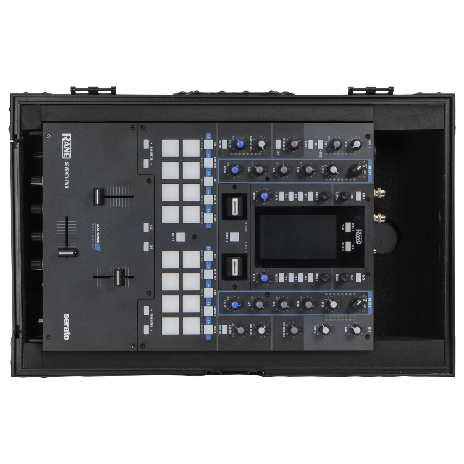 Our Black Label™ FZRANE72BL case is specifically made to hold the Rane Seventy / Seventy-Two / Seventy-Two MKII 2-channel DJ mixer with plenty of rear space essential for multi-cable connectivity, and the bottom storage pit helps keep the mixer well ventilated as the dance floor heats up. Features include Heavy-Duty recessed handle and latches, foam-lined and carpeted interior, and a removable lid with stacking ball corners. With cases like this, there's no doubt why Odyssey's ATA designs "Rane" supreme in the DJ flight case industry.