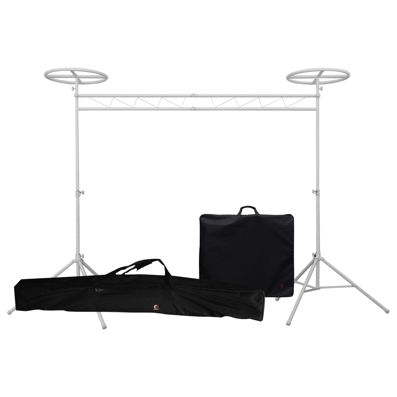 - Includes One |LTMTS10HWHT| Halo Truss System, One |BLTMTSHALO| Carrying Bag That Holds the Two Halo Rings, and One |BLTMTS| Carrying Bag That Holds the Tripod Truss I-Beams And Tripods