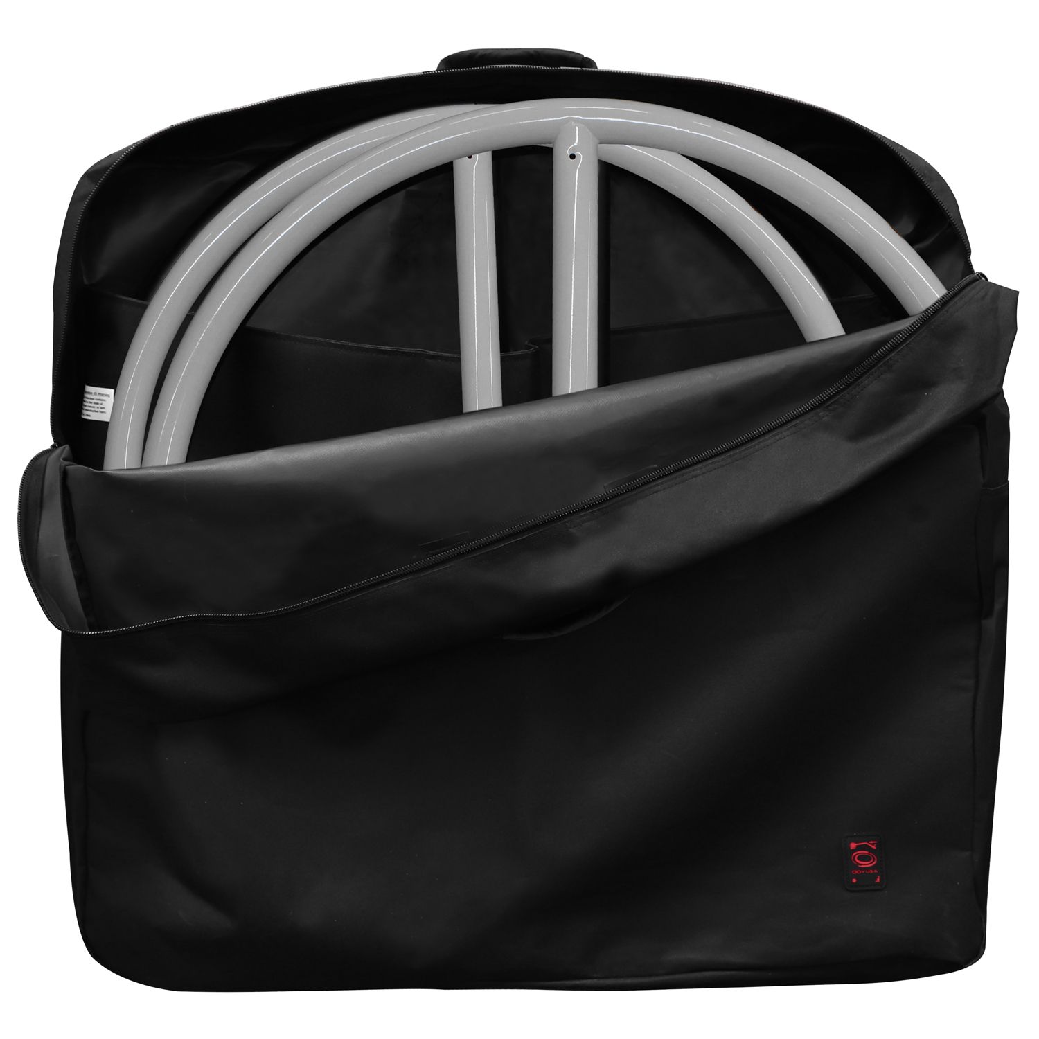 Say "Halo" to Odyssey's new Mobile Lighting Halo MOBILE PACK Lighting Truss Systems and take your lighting setups to a new dimension. The new Halo ring structures allow you to put together 360 degree lighting arrangements on each end of the 10' long truss I-beam for a wide range of possible lighting configurations, more than standard mobile lighting truss systems. Each quick and easy setup system is comprised of two telescoping tripod stands, two 5' long truss I-beams, and two 30" diameter Halo ring attachments. MOBILE PACKS include durable handy carrying bags to store and haul your Halo system in. Portability, high stability, and increased setup creativity is what you get with our Halo lighting systems.