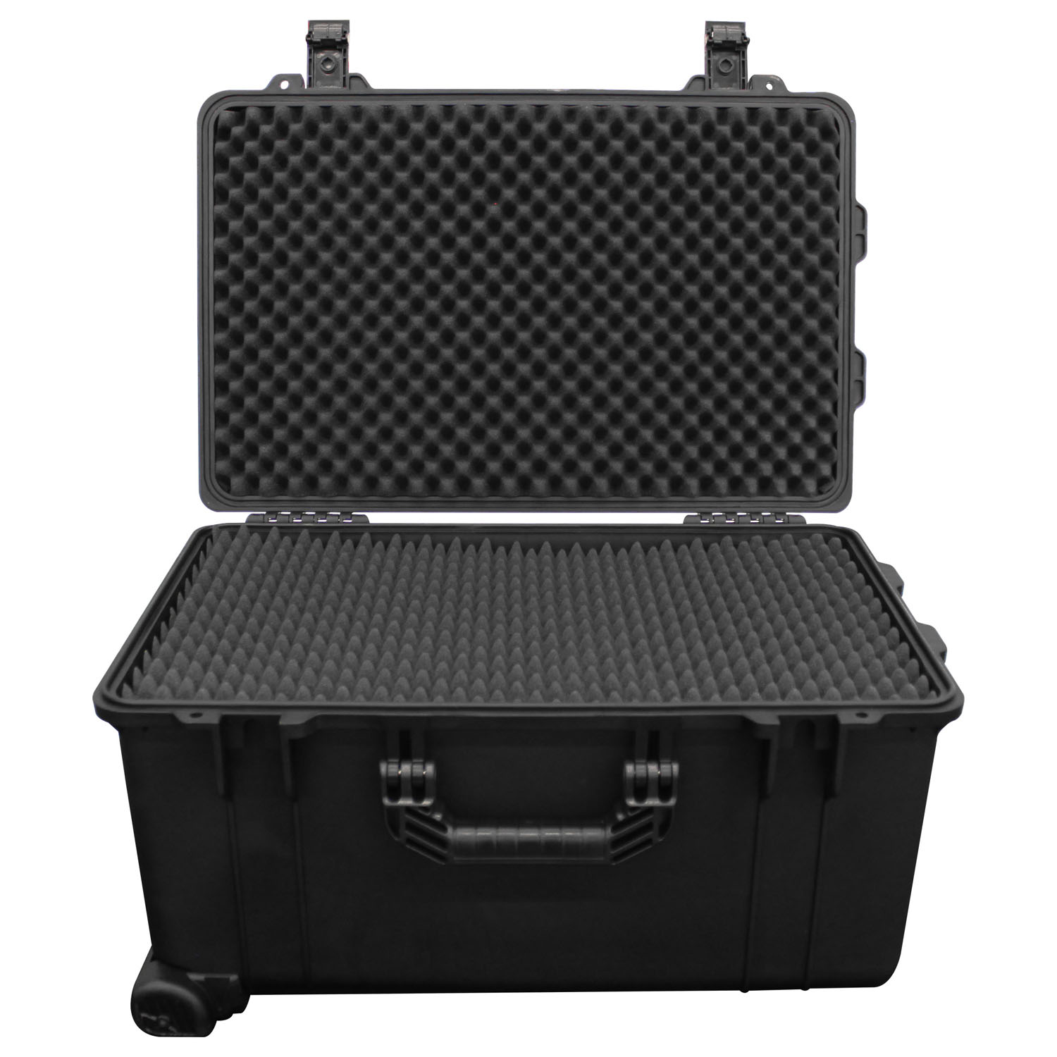 Our polymer plastic watertight, dust-proof and impact resistant injection molded cases are made of a high strength polymer resin which will provide the Ultimate in protection for your gear. The VU221411HWFeatures a diced foam interior that can be plucked to the shape of the gear you are storing inside. Standard features include a comfortable carrying handle, pressure release valve and padlock loops. "HW" Models feature a pullout handle and wheels.