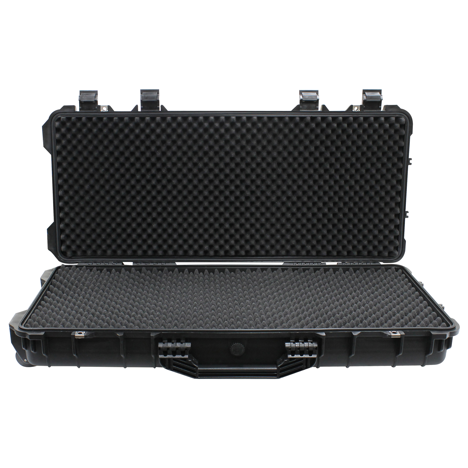 Our polymer plastic watertight, dust-proof and impact resistant injection molded cases are made of a high strength polymer resin which will provide the Ultimate in protection for your gear. The VU350514WFeatures corner wheels for transport convenience and a soft convoluted dual egg foam-lined interior. The bottom section is layered with diced pluck foam that can easily be adjusted to fit additional gear and accessories. Standard features include a comfortable carrying handle, pressure release valve and padlock loops.