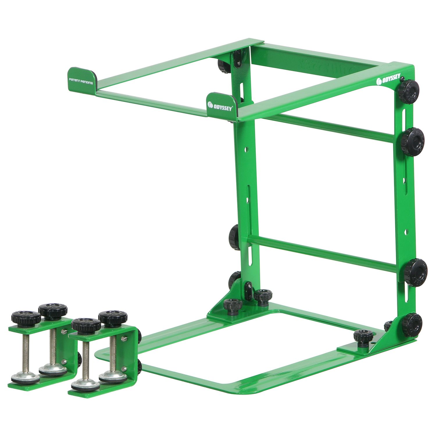 DESIGNER DJ™ SERIES GREEN L STAND MOBILE FOLDING LAPTOP/GEAR STAND WITH TABLE/CASE CLAMPS
