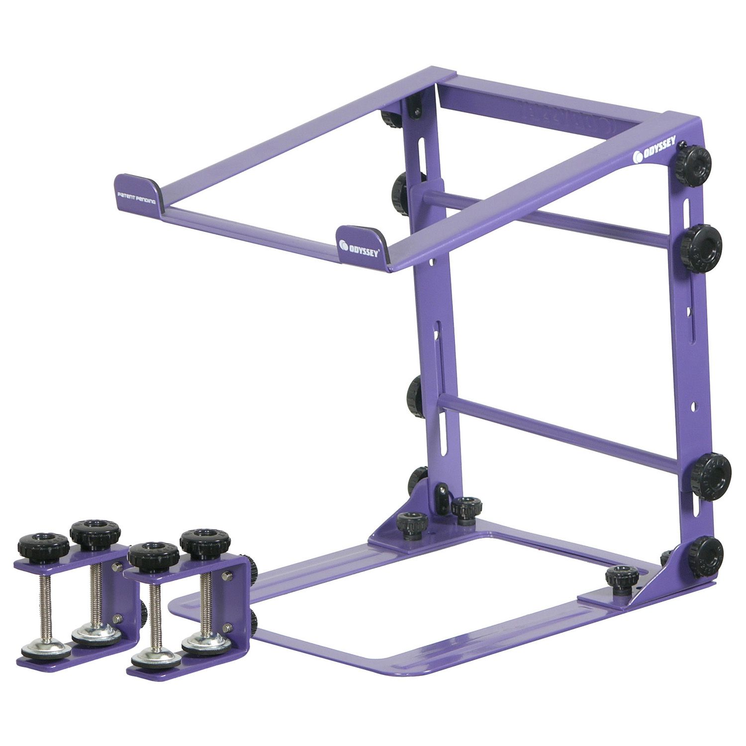 DESIGNER DJ™ SERIES PURPLE L STAND MOBILE FOLDING LAPTOP/GEAR STAND WITH TABLE/CASE CLAMPS